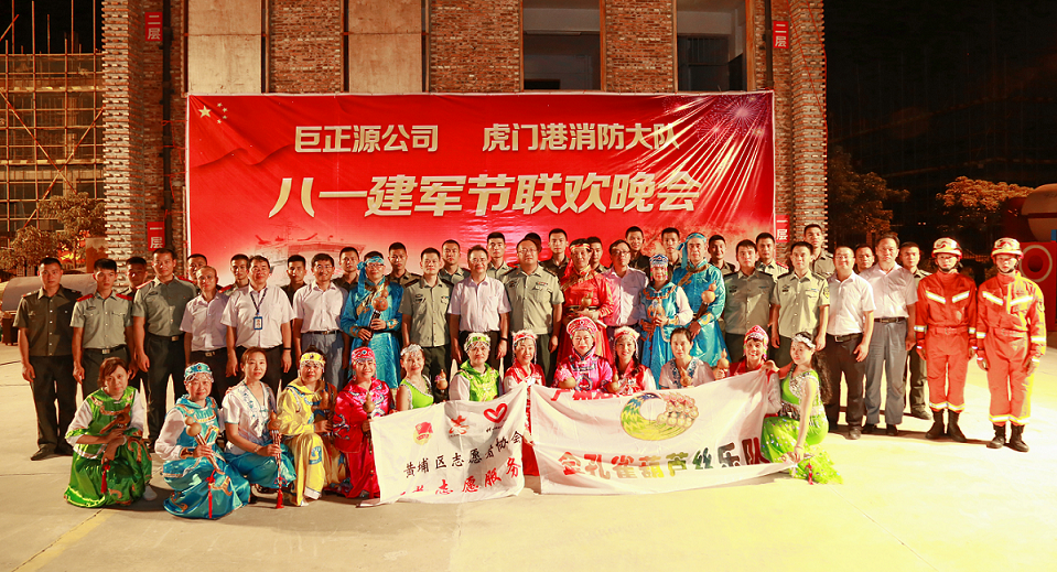 慶祝中國人民解放軍建軍91周年,2018年8月1日晚,巨正源公司與虎門港消防大隊舉辦了慶“八一”聯歡晚會,公司領導曾一平、張寶業、李漢初、張金明、梁偉雄和虎門港消防大隊教導員張文超、大隊長曹梓信等領導出席活動。消防大隊官兵、巨正源退伍軍人員工、新入職員工及廣州石化葫蘆絲協會表演隊等共300余人參加了活動。