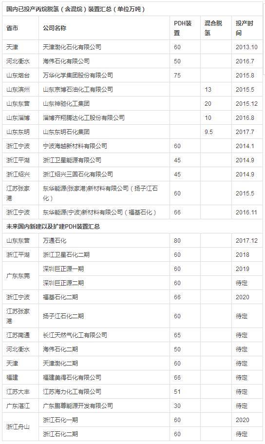近年來,丙烷脫氫工藝在中國迅速發(fā)展,產(chǎn)能擴(kuò)張速度驚人,逐漸成為丙烯重要來源之一。自2013年10月,隨著天津渤化60萬噸/年的丙烷脫氫裝置投產(chǎn)運(yùn)行,丙烷脫氫裝置在國內(nèi)正式拉開序幕。此后的幾年里,丙烷脫氫裝置在國內(nèi)遍地開花,迅速發(fā)展,主要集中在華東的江浙地區(qū)、華北地區(qū)以及山東地區(qū),而且近兩三年混合烷烴脫氫這種更加靈活的裝置在山東地區(qū)陸續(xù)投產(chǎn)運(yùn)行。至今,國內(nèi)丙烷脫氫(含混烷)制丙烯總產(chǎn)能達(dá)到513.5萬噸。但是從下表可以看出,華南地區(qū)尚無丙烷脫氫裝置,深圳巨正源丙烷脫氫裝置建成后,將填補(bǔ)華南地區(qū)丙烷脫氫制高性能聚丙烯及下游加工項(xiàng)目的空缺,給當(dāng)?shù)鼗て髽I(yè)提供優(yōu)質(zhì)的化工原料。