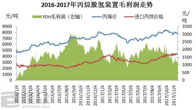 近年來,丙烷脫氫工藝在我國得以迅速發(fā)展,一方面是丙烯需求旺盛,供應(yīng)有缺口;另一方面裝置利潤優(yōu)勢明顯,是得以迅速發(fā)展的主因。雖然近幾年國際油價(jià)一路下滑并在低位震蕩,大宗商品行情并不樂觀,丙烯價(jià)格也有明顯回落,但作為原料氣的丙烷價(jià)格低位,這也保證了丙烷脫氫工藝的利潤保持良好,這也是華南地區(qū)也開始布局丙烷脫氫項(xiàng)目的重要原因。