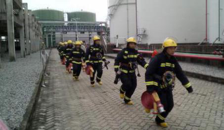 2017年6月21日,盛源石化組織開展了儲罐泄漏著火綜合應急演練,演練模擬T905儲罐轉罐過程中,罐邊進料管線金屬軟管墊片爆裂,造成大量汽油泄漏,靜電引燃著火。