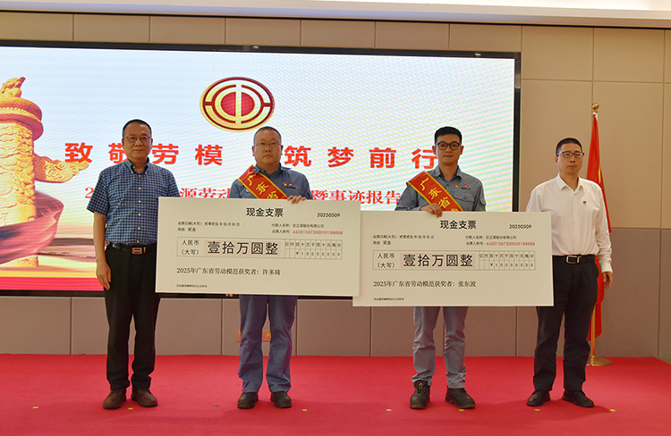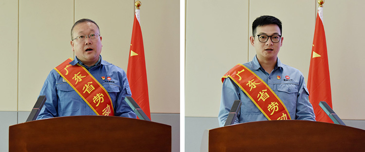 會(huì)議宣讀了對榮獲“廣東省勞動(dòng)模范”的許多琦、張東波同志的表彰決定,對他們辛勤付出和工作成效予以肯定。公司領(lǐng)導(dǎo)為許多琦、張東波同志頒發(fā)獎(jiǎng)金,并為許多琦、張東波“勞模和工匠人才創(chuàng)新工作室”揭牌。