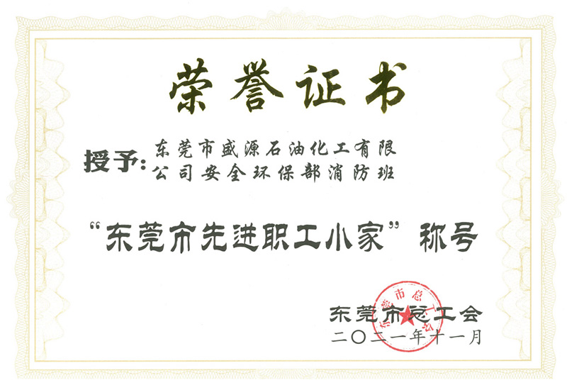 近日,巨正源所屬盛源石化公司安全環(huán)保部消防班被東莞市總工會授予“東莞市先進職工小家”榮譽稱號。